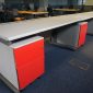 Table – Boardroom Multi-Section Wood and Blue Vinyl