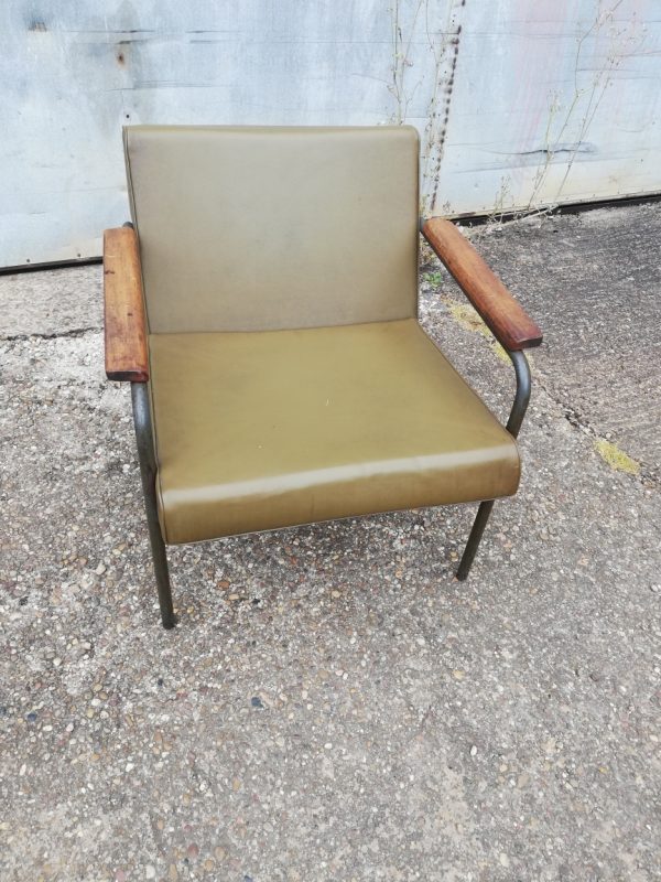 Reception Seating – Vinyl Chair/Wooden Arms/ Olive Green