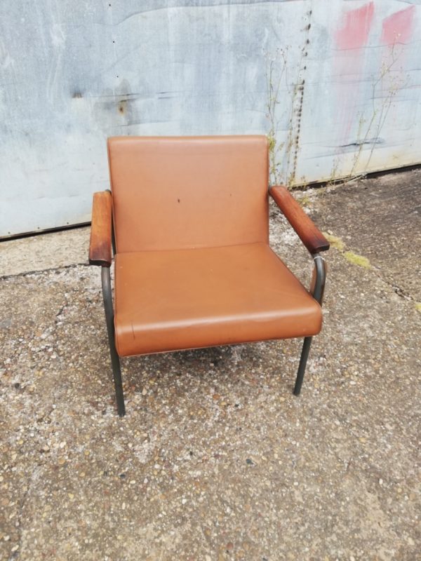 Reception Seating – Vinyl Chair/Wooden Arms/ Tan